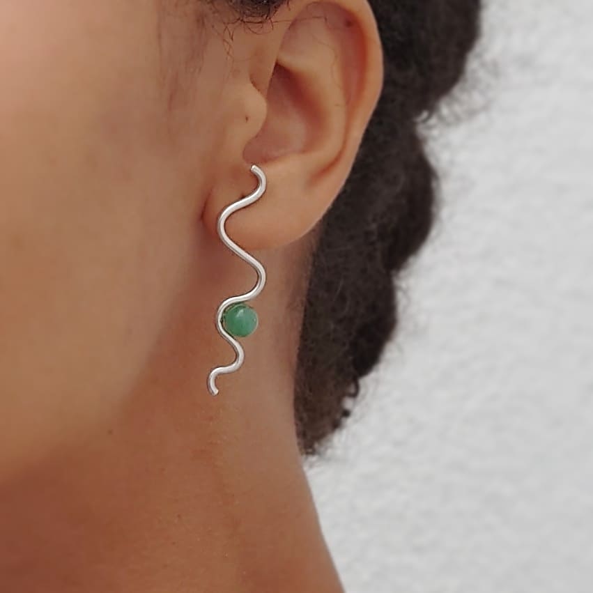 Sophisticated and elegant silver earring with green aventurine bead. Perfect for the mismatched style.