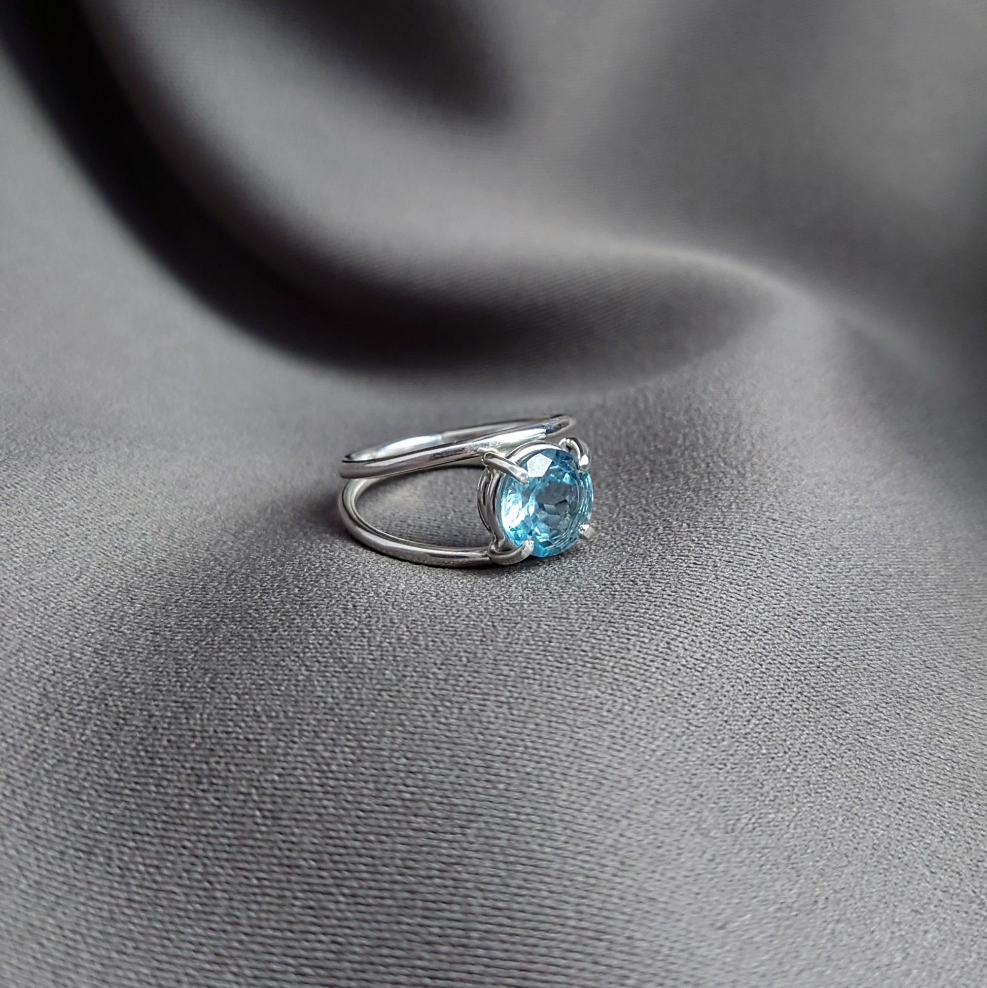 The Diva ring is a simple yet eye catching cocktail ring with a blue topaz stone.