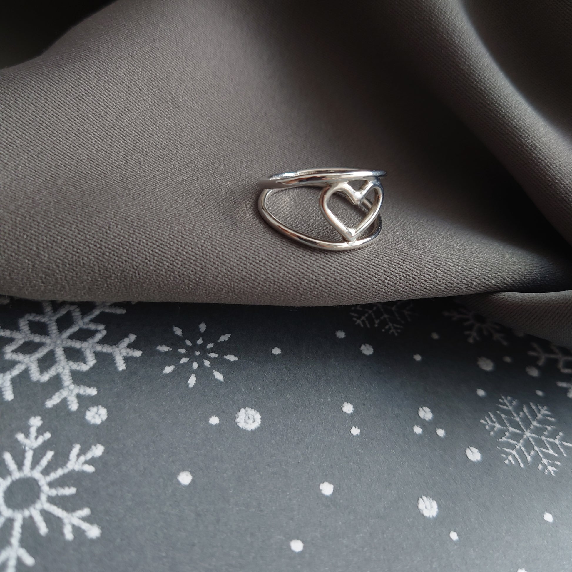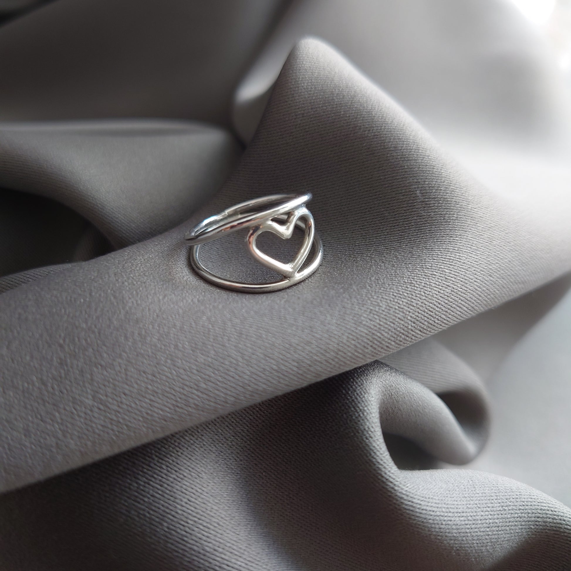 Two band ring with a heart in the middle. All handcaftet in sterling silver.