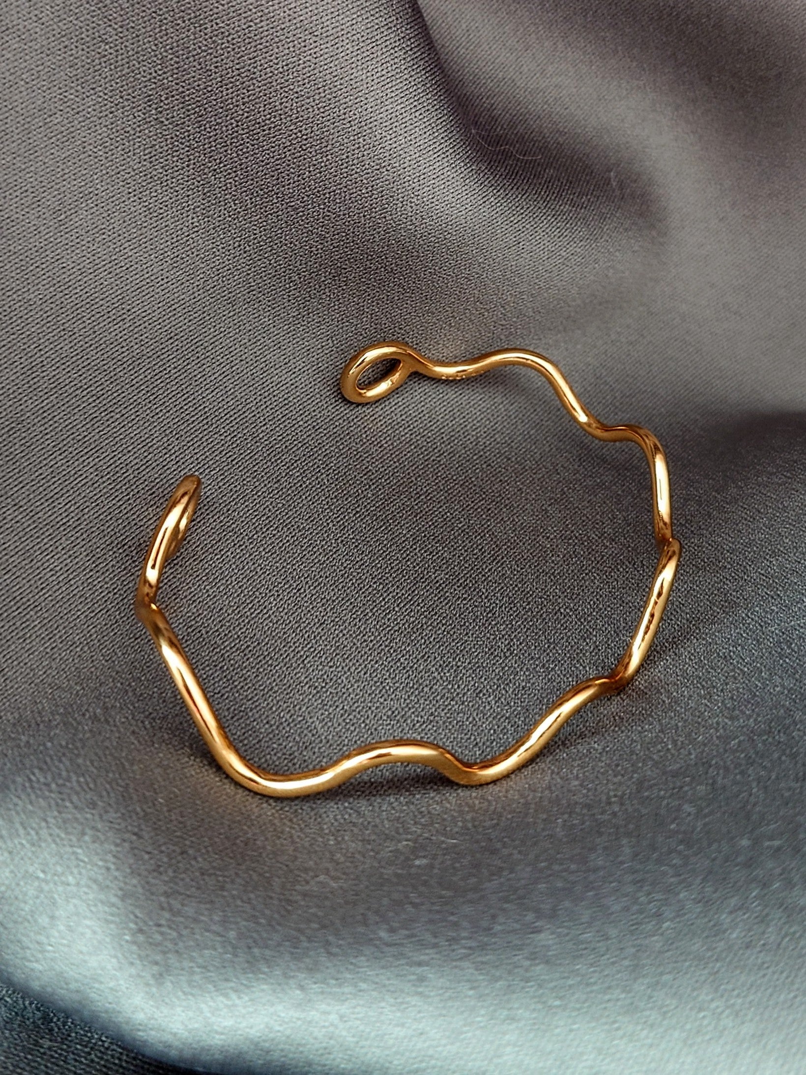 The Wave Cuff Bracelet features a fluid and organic wave pattern that adds a touch of elegance and sophistication to any outfit.